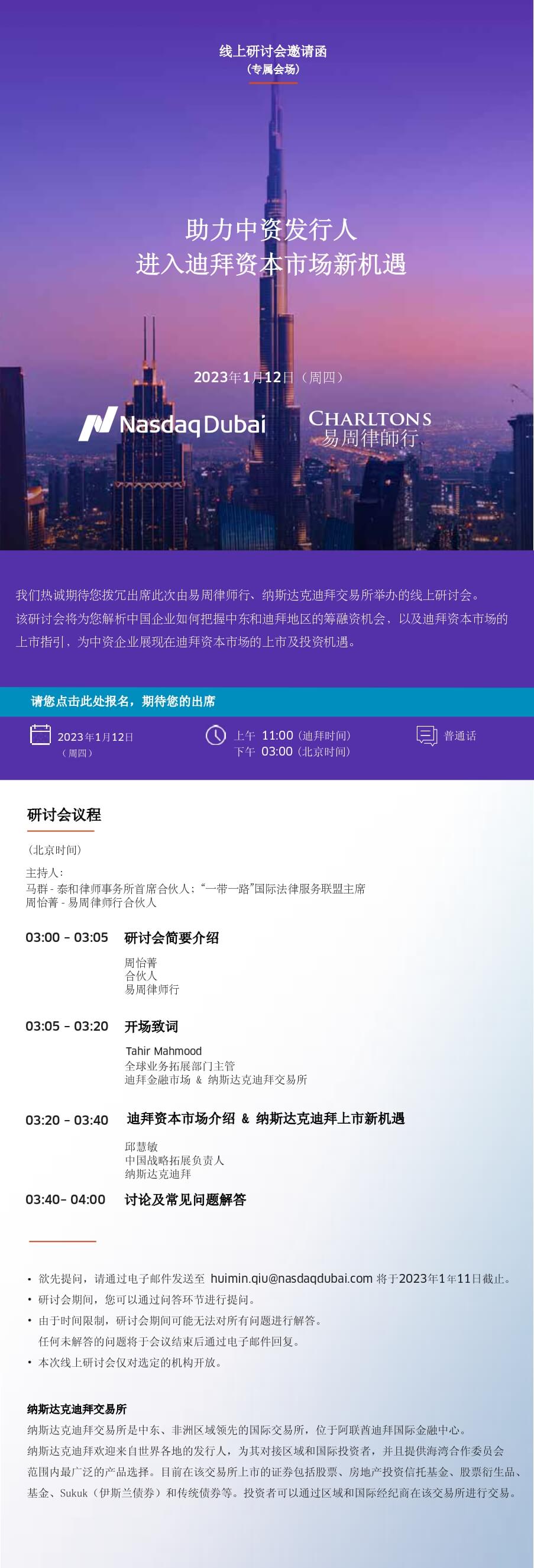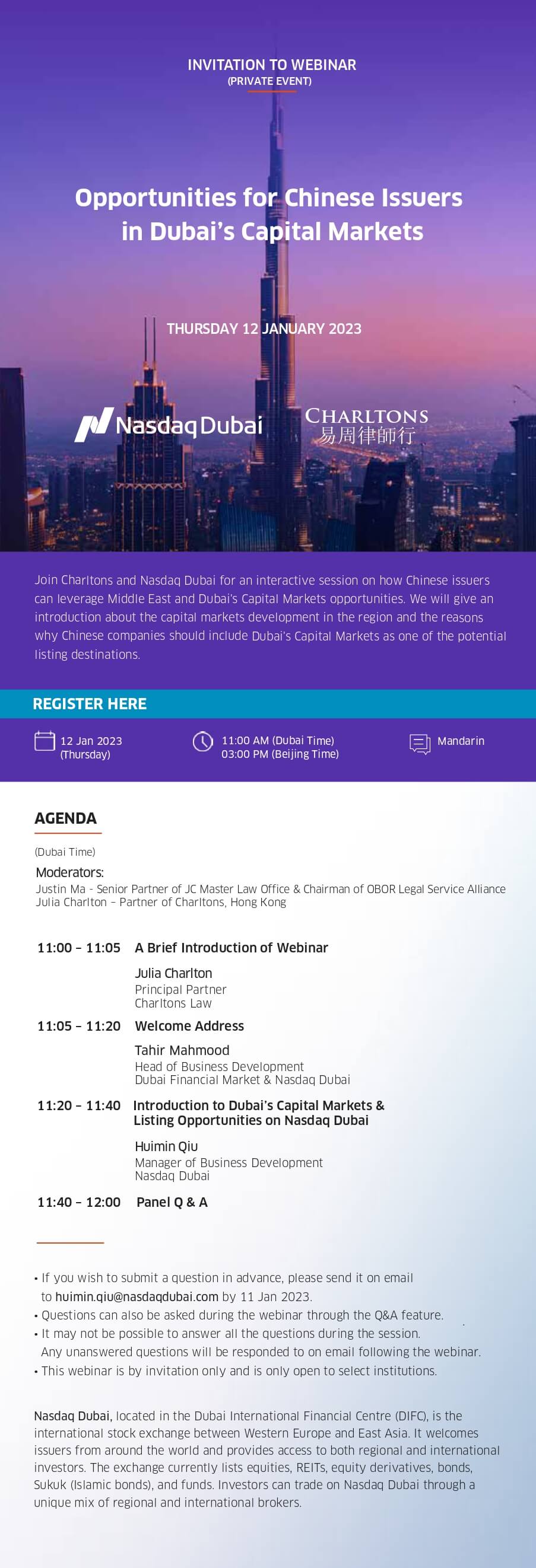 Webinar : Opportunities for Chinese Issuers in Dubai’s Capital Markets | 助力中资发行人进入迪拜资本市场